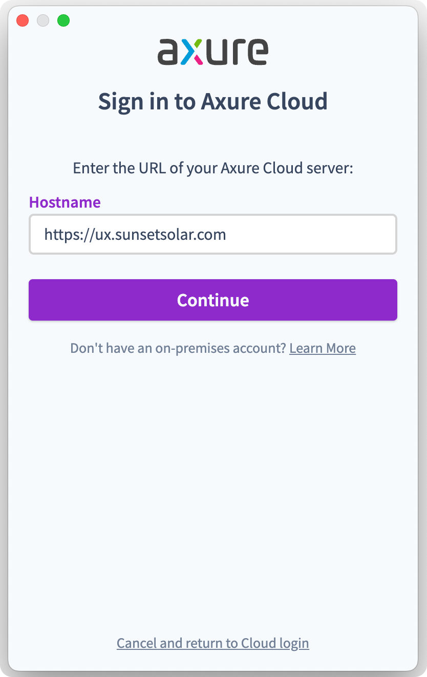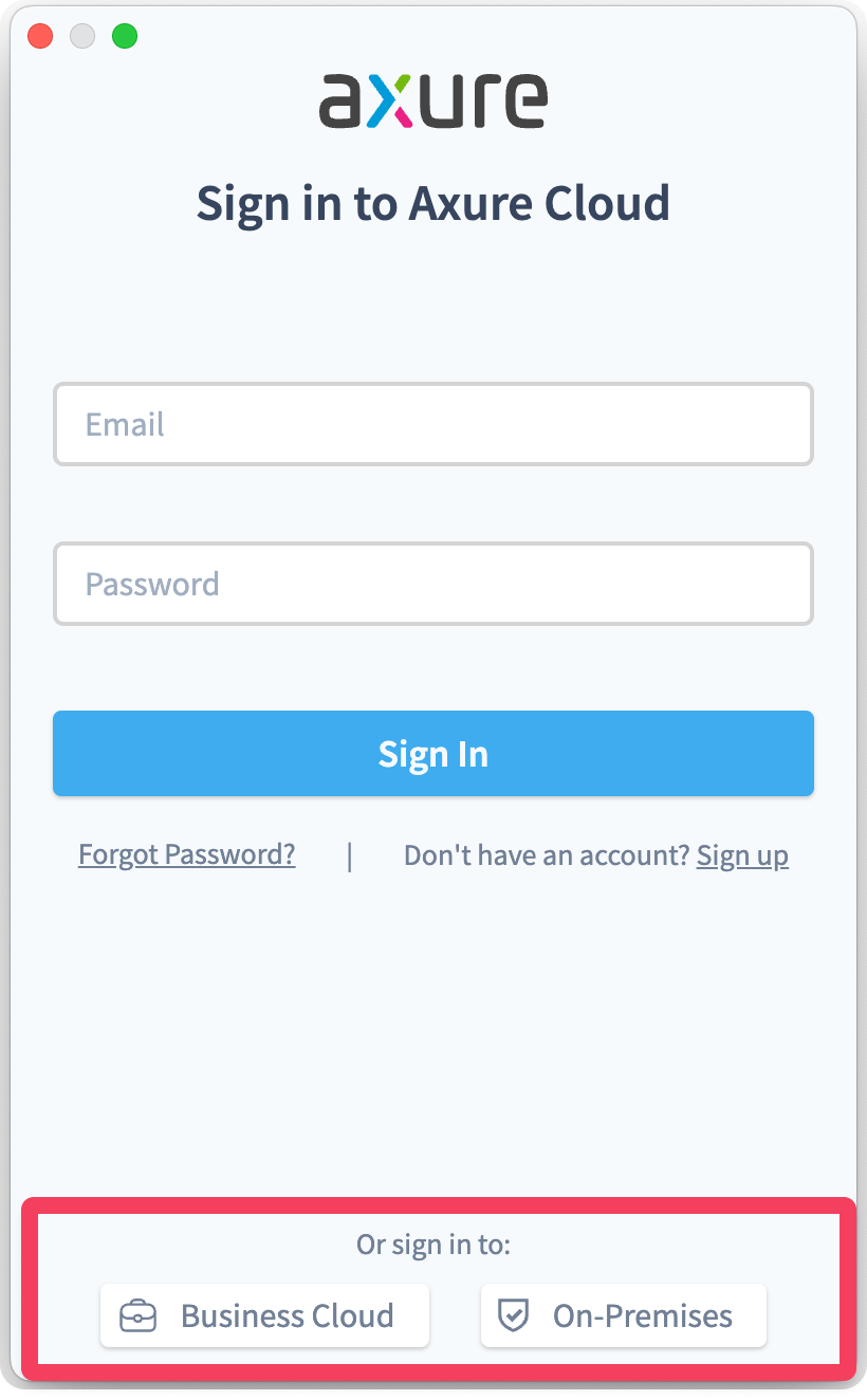 To access your Axure Cloud for Business private instance or on-premises server in Axure RP or the Axure Cloud desktop app, follow the steps below.