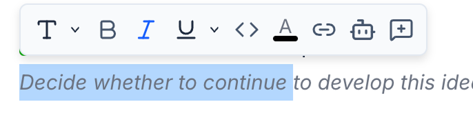 Select any text to open the bubble menu, a floating toolbar with inline formatting options: