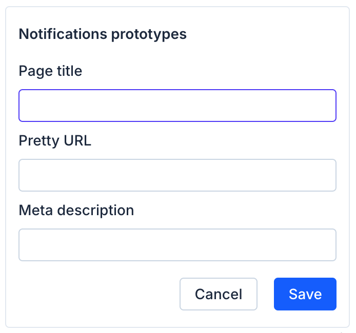 Then in the popup that appears, you can assign the pretty URL, as well as add a custom page title and a meta description.