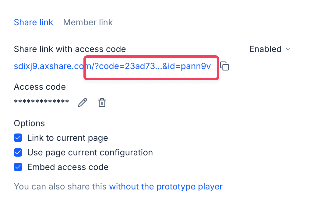 Anyone you share the embedded link with will be able to bypass the access code page and view the prototype without manually entering the access code.