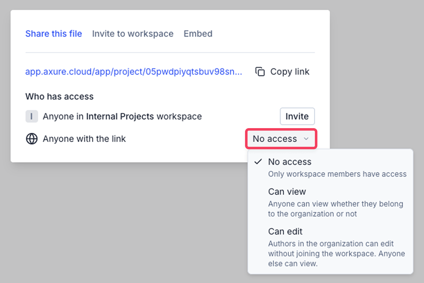 - No access – Only workspace members can open the file